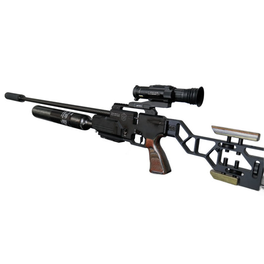 The KalibrGun Snipe II is the ultimate sniper rifle "snipe" of airguns, sporting a 1:17:7 CZ barrel and a unique regulator which, along being able to be tuned down nder pressure, can go between 20 and 200 bars.