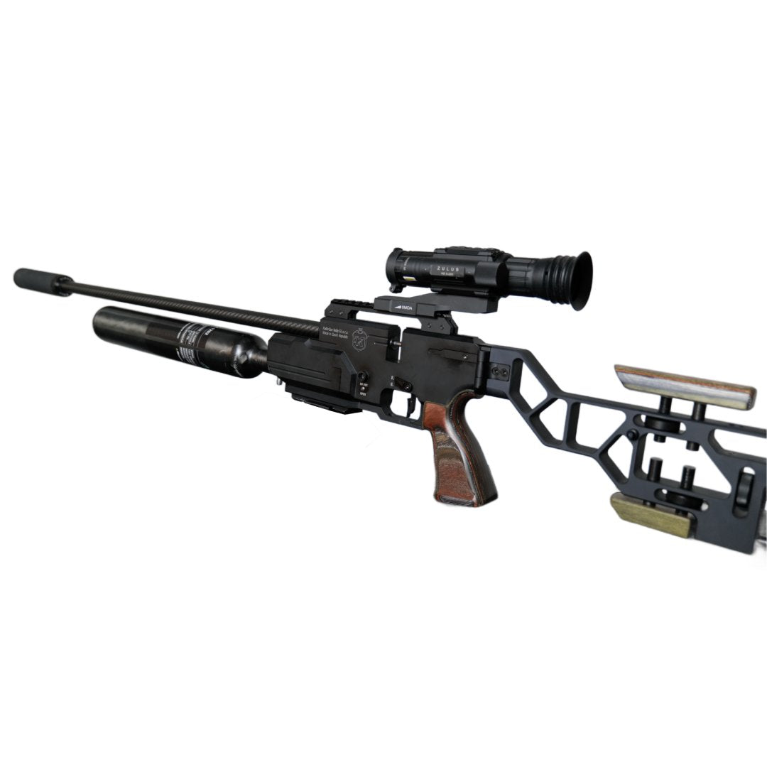 Notable features that distinguish it from the Cricket platform include a metal, enclosed spring loaded magazine, a foster quick disconnect (no probes), a foldable skeletonized stock that is highly adjustable for bench shooters, a mid-rifle balance, and the most shocking features unlike any airgun on the market: an externally adjustable regulator that can be adjusted both up and down UNDER pressure. The regulator can be adjusted from 20 bar to 200 bar! Another incredible feature of this rifle is the ease of use. All tuning is done with only the regulator, making it an incredibly simple platform to dial in. This is a continuation of the same legacy that Kalibrgun has made for itself: simple, built like a tank platforms that deliver deadly accuracy.