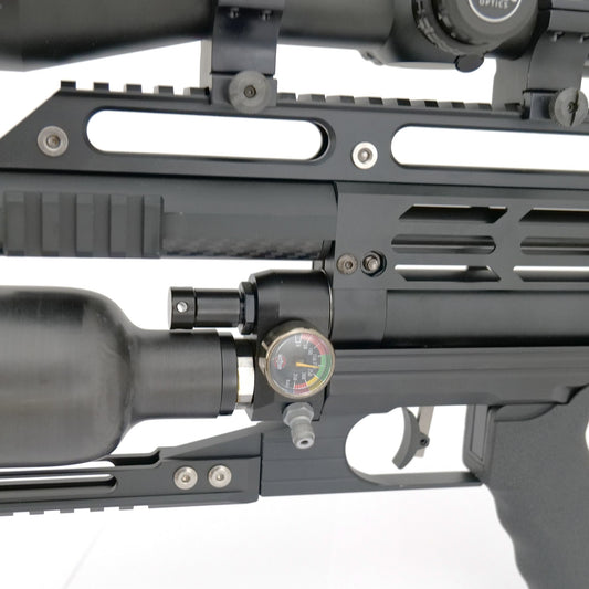 Click hereThe KalibrGun Snipe II is the ultimate sniper rifle "snipe" of airguns, sporting a 1:17:7 CZ barrel and a unique regulator which, along being able to be tuned down nder pressure, can go between 20 and 200 bars.